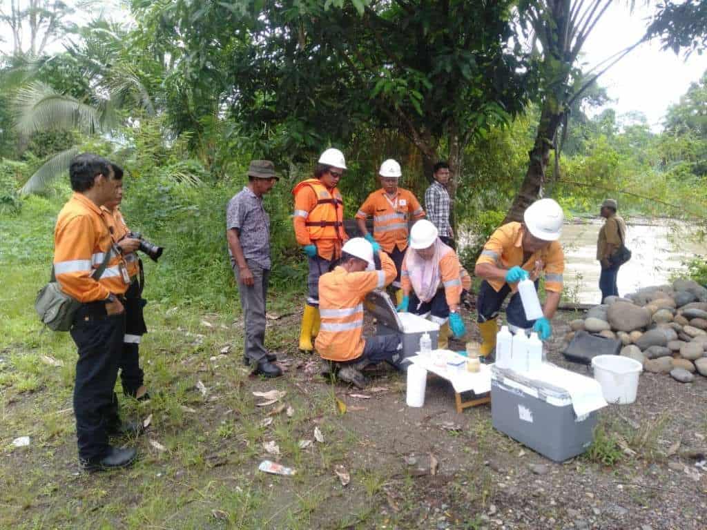 PT AGINCOURT Resources (PTAR) bersama Tim Terpadu Pemantau Kualitas Air Sisa Proses Tambang Emas Martabe kembali melakukan pemantauan dan pengawasan berkala atas kualitas air sisa proses yang dialirkan ke Sungai Batangtoru, untuk triwulan III tahun 2024, Selasa (24/9/2024). Pengawasan dan pemantauan kualitas air sisa proses dilakukan dengan mengambil sampel air sisa proses (water sampling), di